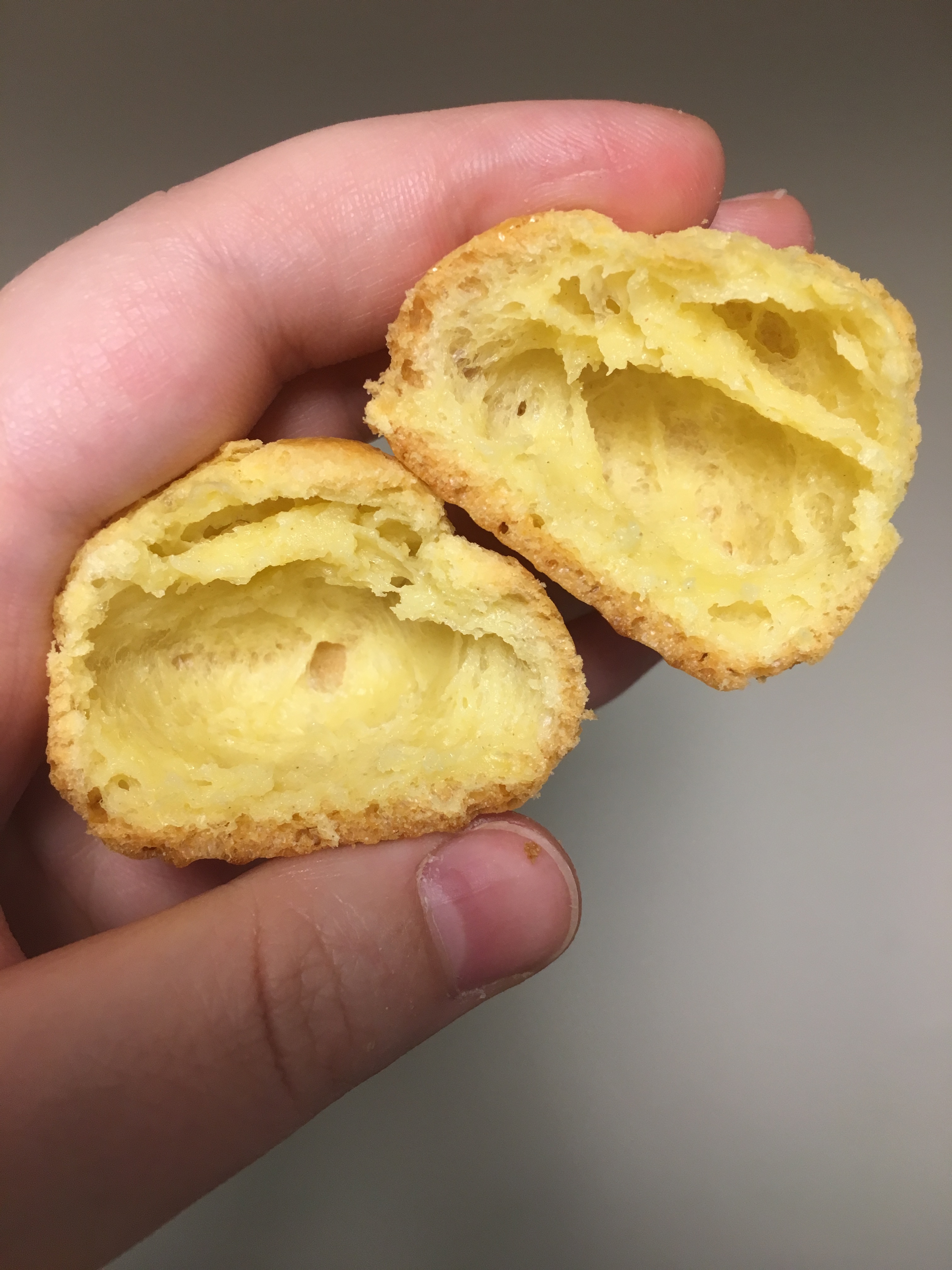 - When the puffs are finished baking, slice one in half to make sure it is hollow