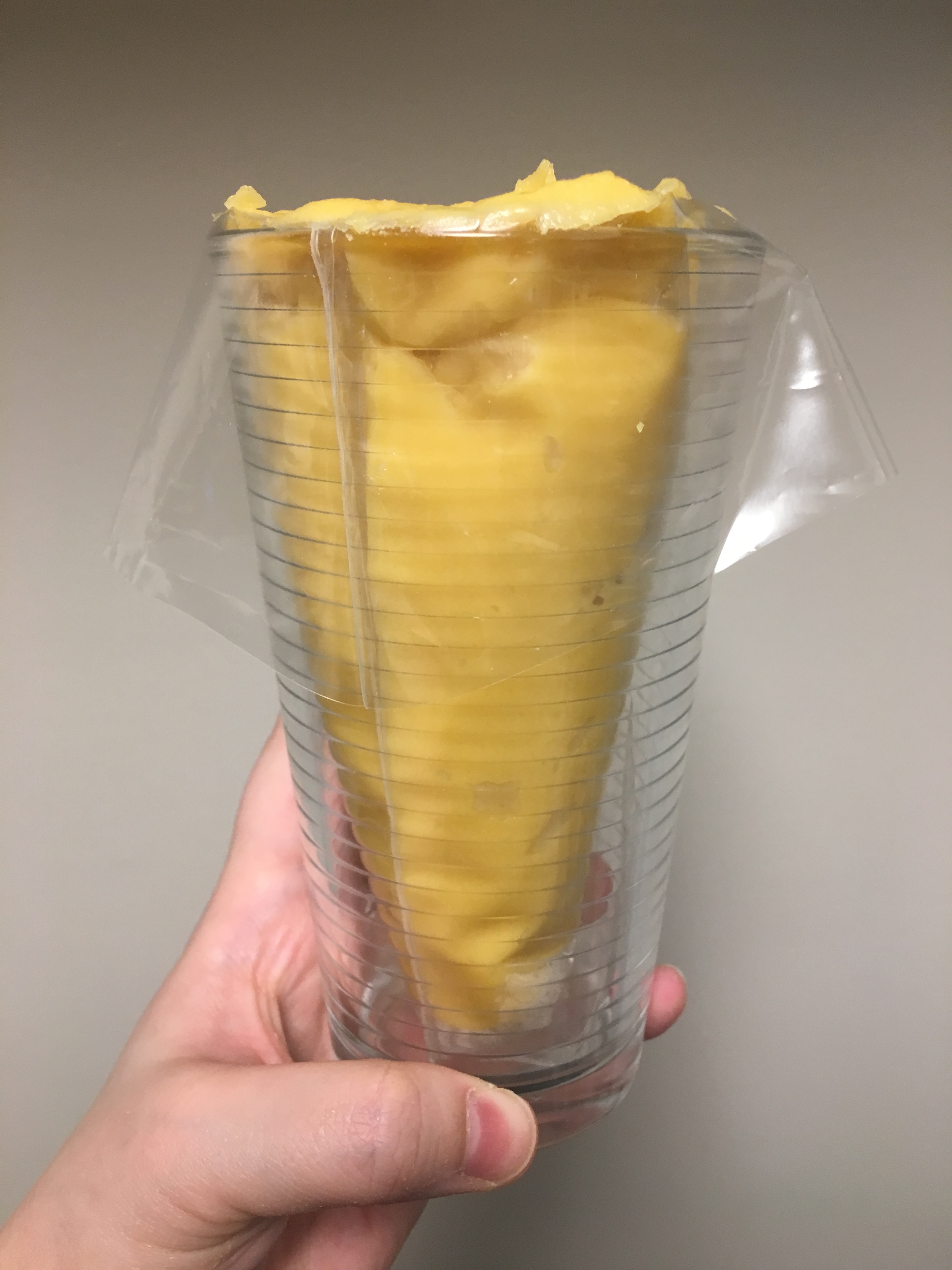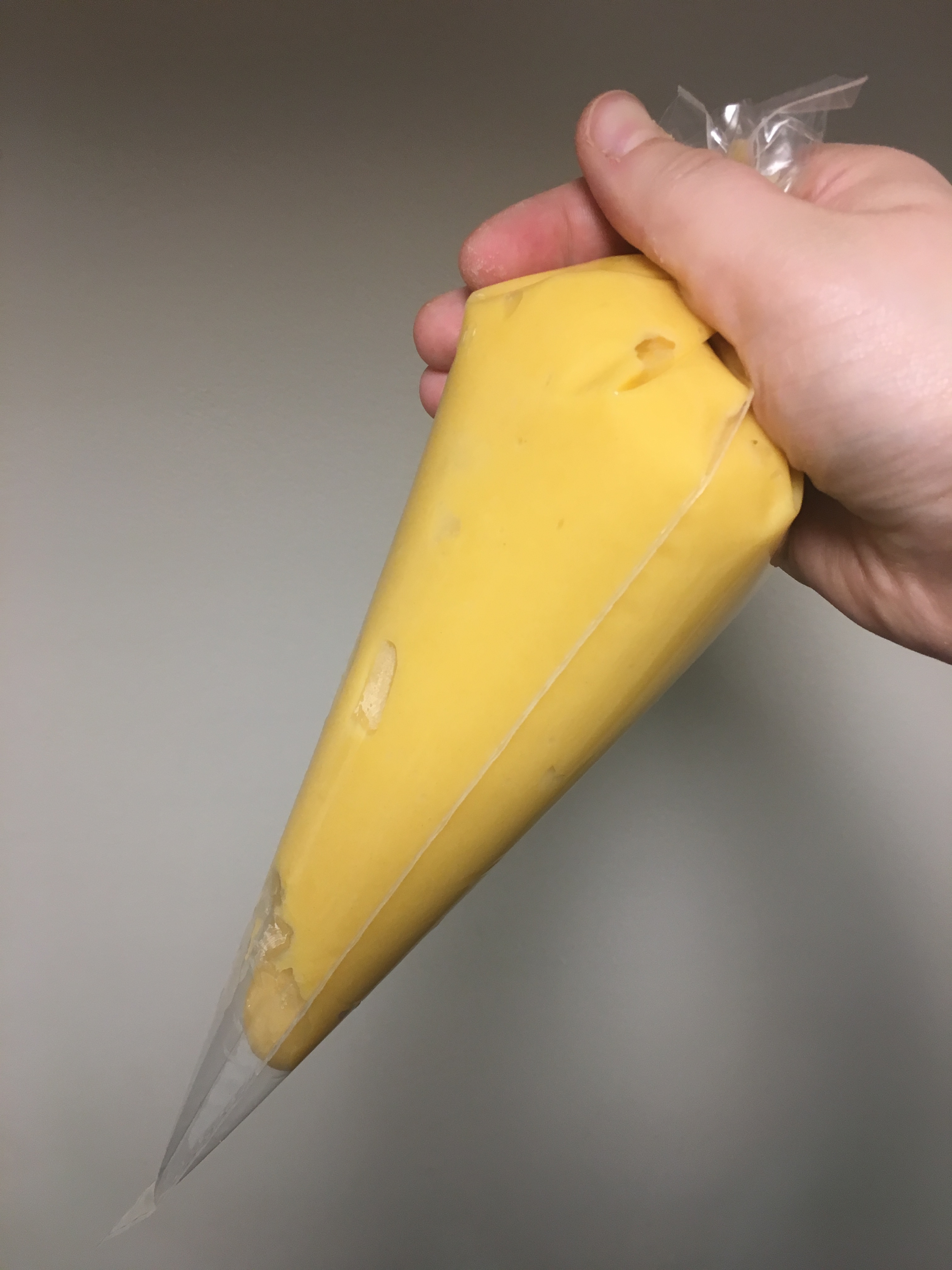 - Remove from the glass, twist the top, and when you’re ready, cut off the bottom to begin piping